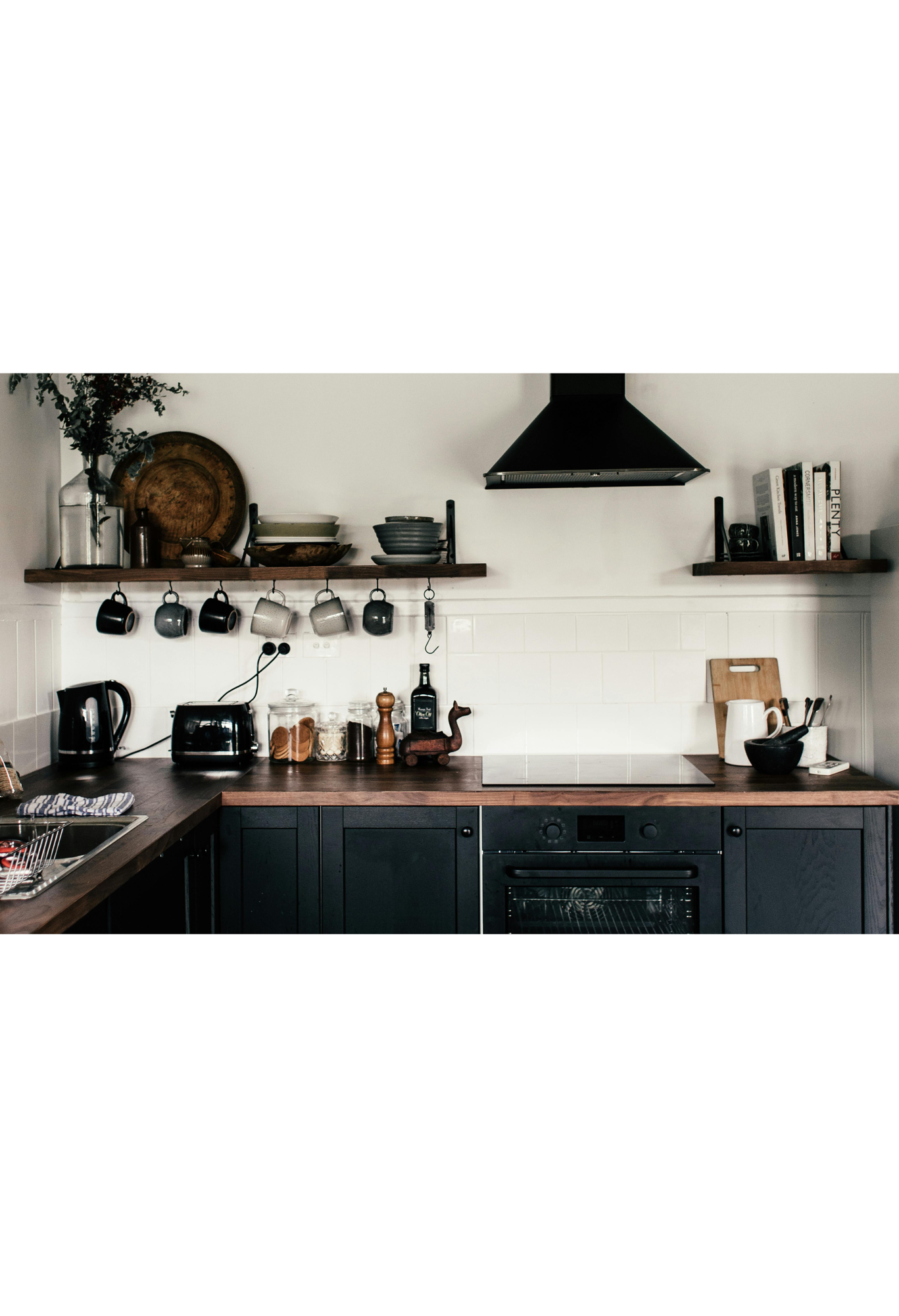 Hooks or rails work well for frequently used items. For example, mugs or utensils. Keep it minimal and intentional.